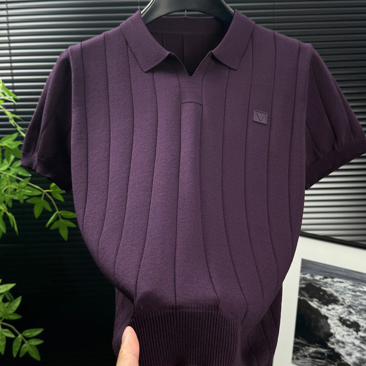 【T恤】【有视频 丝光棉色织条 广东大厂出品】 短袖 夏季品牌男装翻领纯棉短袖t恤宽松大码半袖体恤衫上衣