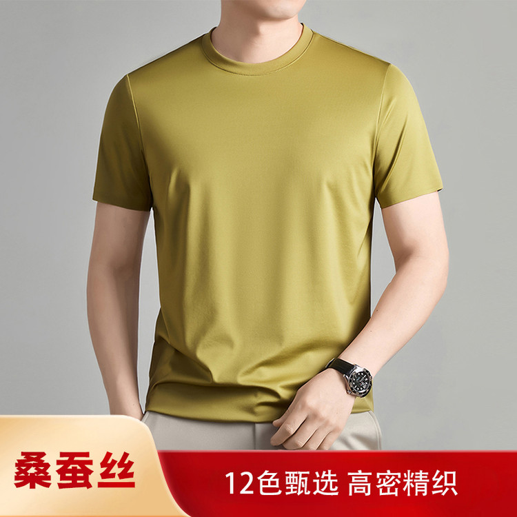 真丝桑蚕丝短袖T恤衫男士休闲时尚桑蚕丝短袖T恤衫